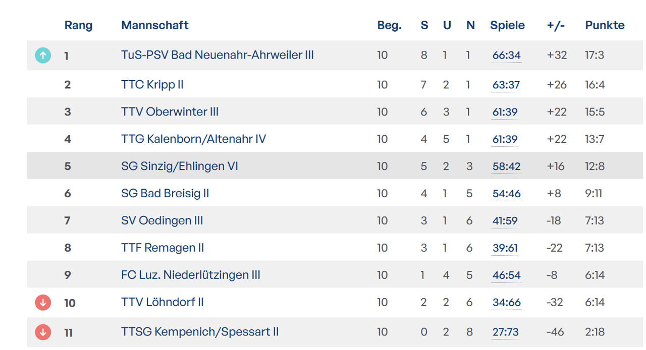 In einer insgesamt starken Mannschaft stach insbesondere Tomas Frings heraus, der mit einer 12:6 Bilanz seinen aktuell höchsten TTR-Wert von 1684 Punkten jemals erreicht hat. Aber auch Tim Schlimpen und Timo Kusch im Doppel mit einer 5:0 Bilanz, sowie das untere Paarkreuz generell sorgten für starke Oberwinterer Leistungen in der Kreisoberliga, die Geschmack auf mehr machen.